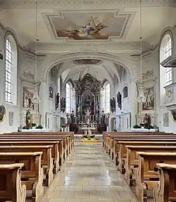 Eine umfassende Renovierung Neugestaltung des Langhauses fand von 1789 bis 1791 statt. Dabei wurde auch der Haupteingang nach Westen verlegt, und im Inneren schuf Johann Josef Anton Huber klassizistische Fresken an Decken und Wänden.[3]