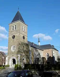 Am 7. April 1857 wurde der Grundstein für die Pfarrkirche gelegt. Die Pläne zum Bau der Kirche stammen von Bauinspektor Blankenhorn aus Aachen. Der Aachener Baumeister Faulenbach ließ sie in den Jahren 1858 bis 1859 von den Bauunternehmern Laurenz Kever und Hubert Crott errichten. Dechant Pauls aus Eupen und Dechant Krichels aus Eynatten segneten die Kirche am 3. Januar 1860 ein. Die Konsekration erfolgte am 12. Juli 1868 durch den Kölner Erzbischof Paulus Melchers.