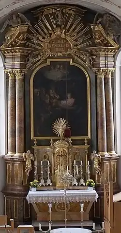 - das Hochaltarbild Verklärung Christi von Johann Georg Melchior Schmittner[13]