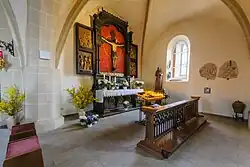 - Marienaltar (nördlicher Seitenaltar) mit Mondsichelmadonna (18. Jahrhundert), Altarflügel (19. Jahrhundert)