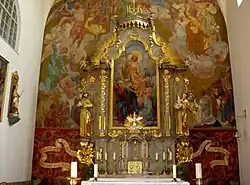 Der linke Seitenaltar ist der Marienaltar, darüber ist eine Taube als Symbol des Heiligen Geistes und Gott Vater. Der rechte Altar ist der Katharinenaltar mit den bereits genannten fünf spätgotischen Flügelrelieffiguren. Über der Sakristeitüre sind die Figuren des Josef sowie der Petrus und Paulus angebracht.