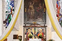 Die Kirche besitzt einen achteckigen Turm, der auf einem rechteckigen Turmsockel steht. Der obere Teil des Turms ist ein Ziegelbau während der untere Teil, wie der restliche Bau auch, mit Bruchsteinen errichtet wurde. Das Altarbild eines unbekannten Künstlers zeigt den Kirchenpatron St. Sebastian sowie den Pestpatron St. Rochus. Einige Einrichtungsgegenstände wie die Statue des hl. Wolfgang, eine hölzerne Tafel mit der Chronik der ersten Kirche, sowie ein hölzerner Opferstock und ein kleines Altarkreuz stammen noch aus dem Ursprungsbau von 1714.