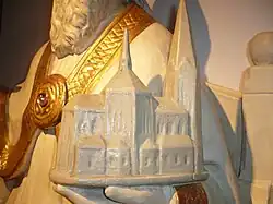 An Ausstattung dieser Kirche sind im Kircheninneren eine Pietà, die dem Künstler Meister Tilman zugeschrieben wird und die gotische Kreuzigungsgruppe, die an der Außenseite angebracht war, überliefert. Beide wurden sowohl in den gotischen Neubau, als auch in den späteren Band-Bau übernommen.[7]