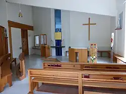 Innerhalb der alten Fabrikshalle wurden Räume abgeteilt, die nun als Sakristei und als Kapelle gestaltet sind. Im ehemaligen Büro- und Wohngebäude und in einem neuerrichteten Trakt fanden Gruppen- und Seminarräume Platz, sowie ein großes Foyer, ein Pfarrsaal, Kanzleiräume und drei Wohnungen.