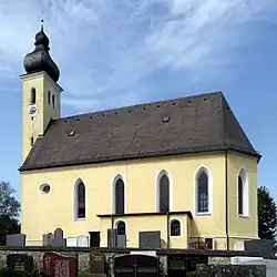 Die spätgotische Saalkirche wurde Ende des 15. Jahrhunderts erbaut. Sie besteht aus einem Langhaus, einem dreiseitig geschlossenen Chor im Osten und einem Kirchturm im Westen, der nach einem Blitzeinschlag 1784 mit einer Welschen Haube bedeckt wurde. 1861 erfolgte die neugotische Umgestaltung und Neuausstattung des Kircheninneren, das bei einer 1968/69 durchgeführten Renovierung das heutige Erscheinungsbild erhielt.