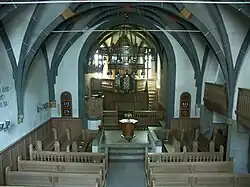 Der älteste erhaltene Teil der Kirche ist ein Freskenraum, der auf das Jahr 1350 datiert wird und als Chorraum einer Kirche romanischen Stils gedient hat. Heute wird er als Sakristeiraum genutzt, der ausserhalb der Gottesdienste öffentlich zugänglich ist.