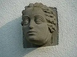 An der Fassade des Glockenturms, über dem Haupteingang der Kirche, befindet sich die Statue „Christus als Kinderfreund“ von Albert Schilling (1904–1987). Eine weitere Statue, darstellend einen menschlichen Kopf, befindet sich an der Längswand der Kirche.[18]