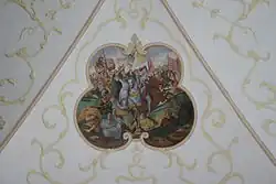 Die Deckenbilder wurden 1726 von dem Hofmaler Augustin Laur aus Dillingen ausgeführt. An der Decke des Chores wird Jesus als Guter Hirte dargestellt, der von den vier Evangelisten umgeben ist. Die drei Medaillons in der Apsis stellen in der Mitte das Herz Jesu und an den Seiten den heiligen Georg und den Erzengel Michael dar.