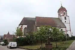 Der erste bekannte Bau war eine mittelalterliche Wehrkirche, von der noch der Rest eines Rundturms sowie Teile der Wehrmauer zeugen.