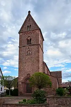 Die neuromanische Kreuzbasilika aus unverputzten Bruchsteinen und Ecksteinen wurde von 1899 bis 1901 nach einem Entwurf von Josef Schmitz erbaut. Der mit einem giebelständigen Satteldach bedeckte Kirchturm auf quadratischem Grundriss im Westen, in dem sich das Portal befindet, beherbergt im obersten Geschoss hinter den als Biforien gestalteten Klangarkaden den Glockenstuhl, in dem fünf Kirchenglocken hängen. Das darunterliegende, durch ein Stockwerkgesims getrennte Geschoss beherbergt die Turmuhr. Ein Treppenturm steht in der nordwestlichen Ecke von Kirchturm und Langhaus. Die Kirchenausstattung hat Heinz Schiestl mit seinen Brüdern gestaltet.