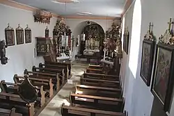 Zur Kirchenausstattung gehören der um 1750 errichtete Hochaltar, zwei Seitenaltäre und eine mit Rocaillen dekorierte Kanzel. Die Gemälde der Kreuzwegstationen aus der zweiten Hälfte des 18. Jahrhunderts werden Georg Karl Urlaub zugeschrieben.