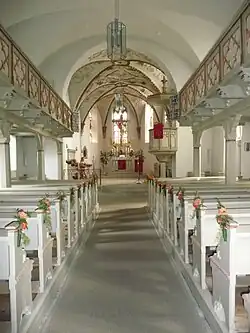 1695 wurde die Kirche erweitert, am Langhaus wurde angebaut und der ursprüngliche hölzerne Dachreiter durch einen steinernen Turm ersetzt. Aus dieser Zeit stammen auch die Stuckarbeiten von Bernhard Quadri im Chorraum. Der Taufengel wurde 1761 von Georg Friedrich Hartung, einem Sohn des Sparnecker Amtmannes Johann Georg, gefertigt. 1845 brannten die Kirche und das Pfarrhaus. Die Kirche erhielt in der Folge eine neue Innenausstattung im Stil der Neugotik, dazu zählen der Altar, die Kanzel, das Chorgestühl, das Gemeindegestühl und die Orgel von Wilhelm Raithel.[2] Die drei Buntglasfenster im Chorraum sind ein Werk des Glasmalers Sebastian Eisgruber aus Nürnberg. Ihre Motive sind Petrus, die Auferstehung und Paulus. Das 1962 bei einem Sturm zerstörte Paulusfenster wurde 2001 nach einem Foto rekonstruiert.