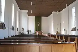 Das Pfarrheim mit dem Kindergarten wurde 1968 fertiggestellt. Auf dem Vorplatz gestaltete Thomas Heyl ein Labyrinth.[7]