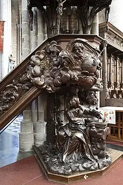 Die Steinabdeckung der ersten Kapelle des südlichen Chorumgangs oder der Kapelle der Bruderschaft vom Heiligen Kreuz, auf der Kupfersäulen standen (Ende des 18. Jahrhunderts verschwunden), wurde von Bildhauer Willem Aerts und Kupferschmied Jacques De Keyser 1528 geschaffen. Im nördlichen Querschiff steht ein Grabdenkmal von John Tryoen mit der Darstellung der Grablegung (polychromer Stein), nach 1638; außerdem ein Grabdenkmal von Christianus Grimmync mit der Darstellung Jesus wird seiner Kleider beraubt (bemalter Stein), nach 1637. Weitere kleinere Denkmäler und Grabsteine sind in der Kirche verteilt.