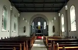 Zur Ausstattung der Kirche gehören der von Architekt Fritz Thoma (Trier) entworfene und aus Sandstein gefertigte Hochaltar von 1952, dessen Ausführung Steinmetz Peter Ewerhardy (Irsch/Saarburg) oblag, sowie das ebenfalls von Thoma entworfene Taufbecken von 1955, das von Steinmetz Johann Ewerhardy (Britten) ausgeführt wurde.[2]