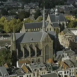 Ihre Vorläufer waren eine Schuilkerk (Untergrundkirche) an der Dorstige Hartsteeg aus dem 17. Jahrhundert und die vorläufige Silokerk an der Herenstraat aus dem Jahre 1842. Alfred Tepe entwarf eine Kirche,[1] die höher und kürzer war als gewöhnlich, da das Gelände von anderen Gebäuden umgeben war.
