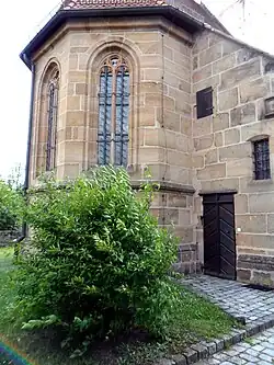 Das spätgotische Bauwerk in Quadermauerwerk aus Sandstein wurde in den Jahren 1489–1491 durch Hermann Winkler und Michael Pernolt auf dem durch Mauer und Graben befestigten Burgstall errichtet. Die spätgotische Saalkirche besteht aus dem Langhaus mit korbbogigem, hölzernen Tonnengewölbe und einem eingezogenen Chor mit Fünfachtelschluss mit Netzgewölbe und Maßwerkfenstern. Die umlaufenden Emporen im Langhaus wurden um 1700 eingebaut. Das schlichte Äußere wird durch einen Dachreiter mit Haube und Uhr auf dem Langhausdach akzentuiert.