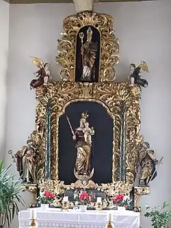 Auf dem rechten Seitenaltar steht die Holzfigur des heiligen Josef mit dem Jesuskind. In den Marienmonaten Mai und Oktober wird der Altar mit einer Marienstatue geschmückt. Außerdem befindet sich im Neubau eine Holzfigur des heiligen Johannes Nepomuk, eine Arbeit aus der Werkstatt des Kronacher Bildhauers Pankraz Fries, um 1760/1770 entstanden.[5]