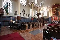 Beim Großen Brand von London wurde die mittelalterliche Kirche zerstört und 1676 bis 1683 von Christopher Wren durch einen Neubau ersetzt. Der Innenausbau, eine geschickte Kombination von Längs- und Zentralbau, ist eine reduzierte Version von Wrens Londoner Kirche St Stephen Walbrook, aber ohne deren Kuppel. Der Raum konstituiert sich aus schmalen Seitenschiffen, ausgegrenzt von ionischen Säulen, das tonnengewölbte Mittelschiff ist querhausartig im Mitteljoch durch ein Kreuzgratgewölbe unterbrochen.[1]