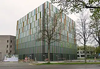 Vor dem Eingang in das Gebäude befindet sich die Skulptur „Archiva 87“ des Bildhauers Jürgen Goertz, geschaffen 1989. Sie ist Teil des Skulpturenparks Kunst am Campus.