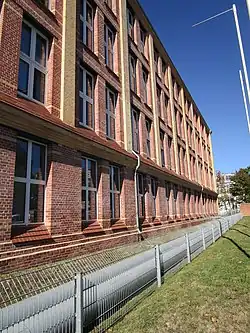 Zur Erinnerung an die Familie Peretz, die Eigentümerin der Strumpffabrik im Gebäude des heutigen Archivs war und in der Zeit des Nationalsozialismus enteignet, verfolgt und getötet wurde, liegen drei Stolpersteine im Bürgersteig vor dem Eingang zum Archivgebäude.