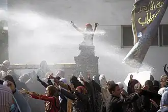 • 2011: Der fast drei Millionen Menschen unmittelbare Arbeitsplätze bietende Tourismus, der 20 Prozent der Staatsdevisen ausmacht, beginnt einzubrechen. Besonders die lukrativeren Kulturtouristen kommen über die nächsten zwei Jahre nur zögerlich nach Ägypten zurück.[42][45] Während die unter Husni Mubarak allgegenwärtige Polizei sexuelle Belästigen von öffentlichen Plätzen unterbunden hatte, führt der Rückzug der Sicherheitskräfte in den nächsten zwei Jahren seit dem Rücktritt Mubaraks zu einem sprunghaften Anstieg sexueller Übergriffe gegen Frauen unter freiem Himmel. Dies führt im Frühjahr 2013 zu heftigen Auseinandersetzungen über die für diese Entwicklung Verantwortlichen.[42][46]
