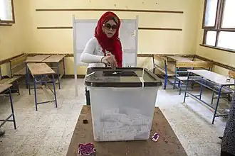 • 28. November 2011 bis 3./4. Januar 2012: Die Muslimbruderschaft erlangt bei der Parlamentswahl fast die Hälfte, die ultra-konservativen Salafisten erhalten ein Viertel der Sitze im Unterhaus,[38][43] so dass die Islamisten über 70 Prozent der Sitze verfügen.[43][39] Die liberale Wafd-Partei belegte mit 8 Prozent den dritten Platz. Die Wahl Oberhauses (Schura-Rat) als zweiter Kammer des Parlaments gewinnen ebenfalls die Islamisten (Muslimbrüder mit 38 Prozent, Nur-Partei mit 16 Prozent), während die liberale Wafd-Partei fünf Prozent erhält.[43]