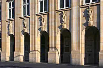 Bereits seit 1814 nutzte die Hamburger Polizeibehörde das Hamburger Stadthaus als zentralen Dienstsitz.[13] Neben anderen Polizeiabteilungen war zur Zeit der Weimarer Republik und des nationalsozialistischen Regimes auch die Hamburger Staatspolizei beziehungsweise anschließend die Gestapo durchgehend bis zum 24./25. Juli 1943 im Erweiterungsbau des Stadthauses mit der Adresse Stadthausbrücke 8 untergebracht.[14] Nachdem das Stadthaus während der Operation Gomorrha nach Luftangriffen der Royal Air Force durch Bombentreffer zerstört worden war, verlegte man die Dienststelle der Staatspolizeileitstelle vorübergehend in Räume der Schulverwaltung in der Dammtorstraße 25. Nach mehreren Wochen wurden schließlich Räumlichkeiten im Ziviljustizgebäude am Sievekingsplatz bis Kriegsende Dienstsitz der Staatspolizeileitstelle.[15]