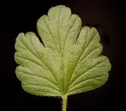 Die an älteren Zweigen meist büschelig, an den im Sommer aus den obersten Kurztrieben entstehenden Langtrieben einzeln wechselständig stehenden Laubblätter sind in Blattstiel und -spreite gegliedert. Die meist behaarte, eiförmige, gekerbte, stumpfe Blattspreite ist bei einer Länge von 1 bis 3 Zentimetern und einer Breite von 1 bis 5 Zentimetern handförmig und drei- bis fünflappig.[1]