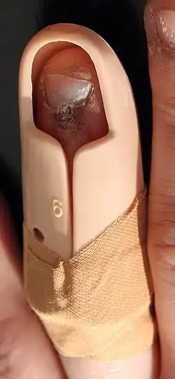 Die Schiene kommt auch bei der Behandlung von Nagelkranzfrakturen der Finger zur Anwendung.