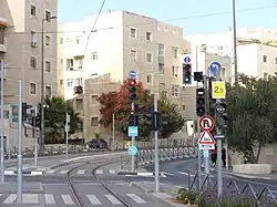 Die Stadtbahn Jerusalem (hebräisch הַרַכֶּבֶת הַקַּלָּה בִּירוּשְׁלִים HaRakkevet haQallah b-Īrūschalajim, englisch Jerusalem Light Rail Transit) ist eine von den Unternehmen Alstom und Connex erbaute und am 19. August 2011 eröffnete Straßenbahn in Jerusalem. Als erster Abschnitt des langfristig mit drei Stammstrecken geplanten Netzes wurde ein 13,8 Kilometer langer Abschnitt (L1, genannt HaQaw haʾAdom, die rote Linie) zwischen Pisgat Seʾev im Norden Jerusalems und dem Herzlberg im Südwesten der Stadt mit 23 Haltestellen errichtet. Diese erste Strecke wird von der Linie L1, genannt HaQaw haʾAdom (die rote Linie) bedient. Verlängerungen nach Neweh Jaʿaqov im Norden und ʿEin Kerem/Hadassa im Südwesten wurden am 27. Februar 2025 eröffnet.[1] Seitdem liegt die Streckenlänge bei 21,5 Kilometern und es gibt 36 Haltestellen. Als Wahrzeichen der Strecke gilt die vom spanischen Architekten Santiago Calatrava erbaute 118 Meter hohe Calatrava-Brücke. Diese Hängebrücke, genannt Weiße Harfe, wurde bereits am 25. Juni 2008 eingeweiht und ist für die Straßenbahn und Fußgänger reserviert.[2] Aufgrund der Einbindung von jüdisch besiedelten Stadtteilen im seit 1967 von Israel besetzten Ostteil Jerusalems ist das Projekt politisch umstritten und Gegenstand palästinensischer Boykottaufrufe. Die zweite Stammstrecke, genannt HaQaw haJaroq (die grüne Linie) ist (Stand März 2025) in Bau.[1] Die dritte geplante Stammstrecke wird HaQaw haKachol (die blaue Linie) genannt. Die blaue Linie, eine Nord-Süd-Verbindung mit zwei Ästen von Ramot bzw. Ramat Eschkol nach Gilo, soll im Endausbau 53 Haltestellen auf einer 31 Kilometer langen Strecke umfassen.[3] Ihre Eröffnung ist (Stand März 2025) nicht vor 2030 zu erwarten.[1] Die Straßenbahn ist die erste des Landes und war bis zur Eröffnung der ersten Linie von Danqal in Tel Aviv im Jahre 2023 die Einzige des Landes.