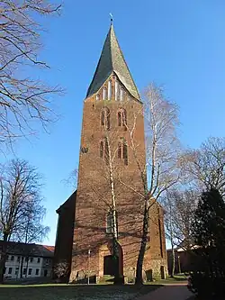 Das Gebäude ist eine frühgotische, dreischiffige Hallenkirche aus Backstein zu zwei Jochen. Sie wurde etwa gleichzeitig mit der Stadtgründung[2] in der zweiten Hälfte des 13. Jahrhunderts mit einem zweijochigen, eingezogenen rechteckigen Chor errichtet. Der Chor ist dendrochronologisch auf 1261 datiert, das Schiff auf 1286. Der Westturm wurde erst Mitte des 15. Jahrhunderts errichtet, gehört also zeitlich der Spätgotik an.[3]