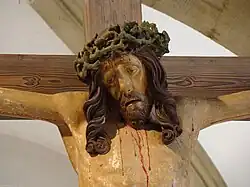 Das Heilige Grab in einer Nische an der Nordwand stammt aus der Zeit der späten Gotik. Der überlebensgroße Leichnam wurde gemäß einer Inschrift 1464 geschaffen und ist als Halbreliefplastik auf einem Sarkophag ruhend dargestellt, während die üblichen Assistenzfiguren als Fresken an die Rückwand der Nische und an der Kirchenwand über der Nischenbekrönung aufgemalt sind. Die Nische wird von Blendmaßwerk bekrönt, ebensolches verziert auch am unteren Abschluss den Sarkophag.