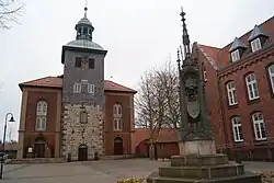 Stadtkirche in Walsrode und das Denkmal auf dem Vorplatz