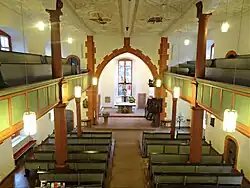 Bei einer umfassenden Außen- und Innenrenovierung im Jahr 1928 wurde der Chor nach Plänen des Denkmalpflegers Heinrich Walbe durch eine Bretterwand abgetrennt und diente als Sakristei. Die Orgel erhielt ihren Platz auf einer hohen Empore über Altar und Kanzel. Eine weitere Renovierung folgte zwischen 1956 und 1962, bei der der Chor wieder freigelegt und die Orgel auf die Nordempore umgesetzt wurde.[13] Die Kanzel wurde wieder am rechten Pfeiler aufgestellt. 1983/1984 wurde eine Kirchenrenovierung und 1985 eine Restaurierung der Stuckdecke durchgeführt. Decke, Wände, Holzsäulen und Emporenbrüstung erhielten wieder ihre ursprüngliche Fassung.[14] Drei Ringanker sichern seitdem das Gebäude. Die Portale erhielten gläserne Windfänge. Vier tragende Holzsäulen wurden ersetzt und deren Fundamente verstärkt.[15] 2008/2009 folgte erneut eine Sanierung der Kirche.