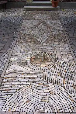 Üblich war eine Verlegung mit der glasierten Schmalseite nach oben im Fischgrätenmuster oder eine Kombination mit anderen Materialien wie Kieselsteinen, Böden zerbrochener Irdenware oder deren wulstige Ränder. Dann erstellte man damit sogar kunstvolle Muster unter Umständen mit Initialen der Erbauer und/oder Angabe des Erbauungsjahres.