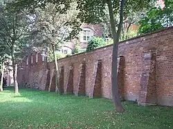 - Stadtgraben: ein der Mauer vorgelagerter Graben, gelegentlich mit Wasser gefüllt und durch Futtermauern, auch Stützmauern genannt, stabilisiert, nach innen mit der Grabenfuttermauer