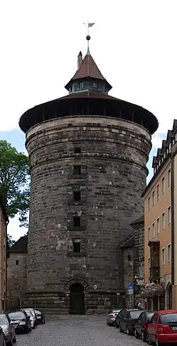 - ↑ zu den Details siehe:Daniel Gürtler: Mauern, Türme und Bastionen. Die Nürnberger Stadtmauer. Sandberg, Nürnberg 2012, ISBN 978-3-930699-73-5, S. 41-40. (sandberg-verlag.de [abgerufen am 16. Juli 2024]).