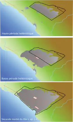 Die erste Befestigung von Kassandros, wie Thessaloniki anfangs hieß, stammt aus dem 3. Jahrhundert v. Chr. Die Eroberung durch die Römer im Jahre 167 v. Chr. brachte den römischen Frieden und machte die Mauern überflüssig, die deshalb etwa in der Mitte des 1. Jahrhunderts v. Chr. bereits in Trümmern lagen.[7]