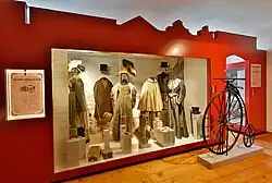 Ab 1507 war Burghausen Sitz eines Rentamts. 1688 erhielt die Stadt den Titel „Hauptstadt“. Mit dem Regierungssitz verbunden war die Hochgerichtsbarkeit, die der Bannrichter im Auftrag des Landesherrn ausübte.[32] Das Richtschwert des letzten Burghauser Scharfrichters, das im Stadtmuseum gezeigt wird, zeugt davon.[33] Eine eigene Abteilung widmet sich dem Alltagsleben der Burghauser Bürgerschaft in dieser Zeit. Soziale Einrichtungen wie Armenhaus und Spital, Handwerk und Zunft, Vereine und Bildungseinrichtungen gehörten zum Leben der Burghauser. Anschaulich wird erklärt, wer eigentlich Bürger werden konnte und mit welcher Amtskleidung der Burghauser Bürgermeister in der Zeit des Rokoko seine Amtshandlungen vollzog. Bedeutsam für Burghausens Stadtgeschichte ist die Rolle als Garnisonsstadt bis 1891.[15] Das 18. und vor allem das 19. Jahrhundert waren vom wirtschaftlichen und politischen Niedergang der Stadt gekennzeichnet, der für den Besucher mittels szenographischer Ausstellungsarchitektur erlebbar wird.[15] Die Belebung des Fremdenverkehrs um die Wende zum 20. Jahrhundert zeigte erste Wege aus der Krise auf. Mit den Touristen entdeckten auch Künstler das pittoreske Stadtbild mit Burg,[34] was die reich bestückte Bildergalerie mit Ansichten Burghausens in der Ausstellung widerspiegelt.