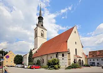 Das vierjochige Langhaus hat ein Netzrippengewölbe aus der 2. Hälfte des 15. Jahrhunderts. Die Rippen der gekehlten Wandpfeiler laufen über vorgelegte Runddienste an und in runde Schlusssteine aus. Die Wandpfeiler stehen auf hohen Sockeln. Im Westjoch steht eine dreiachsige, zweijochige, spätgotische Empore über einem Kreuzrippengewölbe auf Sechseckpfeilern mit runden, skulptierten Schlusssteinen: Christuskopf, Rosetten, Bindenschild und Stadtwappen. Die Verbindung vom Langhaus zum Chor bildet ein eingezogener, im Bogenverlauf gekehlter, spitzbogiger Triumphbogen. Der zweijochige Chor mit Fünfachtelschluss ist gegenüber dem Langhaus wesentlich höher. Er hat ein Kreuzrippengewölbe mit skulptierten Schlusssteinen: das Lamm Gottes und Rosetten. Birnstabrippen laufen von den Diensten an, die in Sohlbankhöhe auf Zackenkonsolen ruhen. Im Norden des Chores ist ein spitzbogiges, gekehltes Sakristeiportal mit einem bemerkenswerten, spätgotischen Türflügel um 1500 mit filigranen, ornamentalen Schmiedeeisenbeschlägen. In den von den Eisenbändern gebildeten Rautenfeldern sind geschnittene und getriebene Ranken- und Maßwerkfüllungen über ehemals farbigem Leder eingebunden. Die Glasmalerei im Chor mit Jugendstilornamentik und der Darstellung adorierender Engel schufen 1914 Ludwig von Kurz zum Thurn und Goldenstein (Entwurf) und Ferdinand Koller (Ausführung).