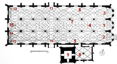 Am südlichen und nördlichen Teil der Kirche sind jeweils vier mächtige Portale eingelassen. Ein weiteres Portal im Osten ist ein Überbleibsel aus der Zeit der Reformation.