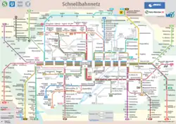 Eine Stadtschnellbahn, teilweise auch kurz Schnellbahn, ist ein leistungsfähiges Bahnsystem zur Abwicklung des Personennahverkehrs in Großstädten und Ballungsräumen, das unabhängig vom Straßenverkehr geführt wird.[1] Stadtschnellbahnen zeichnen sich durch eine dichte Zugfolge und hohe Reisegeschwindigkeiten aus. In Deutschland werden Stadtschnellbahnen nach der Eisenbahn-Bau- und Betriebsordnung (EBO) als S-Bahn oder nach der Straßenbahn-Bau- und Betriebsordnung (BOStrab) als U-Bahn betrieben.