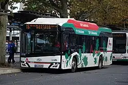 Im Frühjahr 2007 begannen die Stadtwerke Aschaffenburg unter Bezuschussung des Freistaates Bayern mit dem Neubau des westlich an den Bahnhof angrenzenden Regionalen Omnibusbahnhofs.[41] Zum Dezember 2018 führten die Stadtwerke für eine Laufzeit von zwei Jahren einen kostenlosen Nahverkehr an einem Tag in der Woche ein.[42] Seit 2022 setzen die Stadtwerke drei Elektro- und 13 Hybridbusse im ÖPNV ein (Stand 2022).[43][44] Im Februar 2023 bestellten die Stadtwerke für den zukünftigen Einsatz 12 Wasserstoffbusse.[43][45][46]