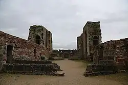 ”...the castle which is now ruinated and there only remains on a hill the fortified trenches that are grown over green.” (dt.: „(...) die Burg, die nun zerstört ist und da bleiben nur auf einem Hügel die befestigten Gräben, die mit Grün überwachsen sind.”)