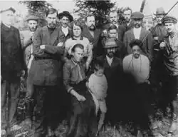 Stalin (4. von links stehend) in der Verbannung mit Kamenew (6. von links stehend) im Dorf Monastyrskoje in der Nähe von Turuchansk im Jahr 1915