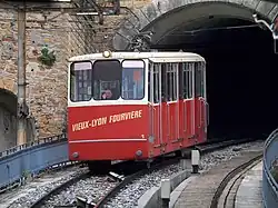 | Wagen 1 der Standseilbahn F2 an der Station Vieux Lyon – Cathédrale Saint-Jean | |