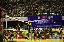 Zwei Mannschaften mit jeweils sechs Spielern treten auf einem durch ein Netz geteiltes Spielfeld gegeneinander an. Ziel des Spiels ist es, den Volleyball durch Pritschen, Baggern, Blocken, Angriffsschläge und Leger über das Netz auf den Boden der gegnerischen Spielfeldhälfte zu spielen und zu verhindern, dass Gleiches dem Gegner gelingt. Eine Mannschaft darf den Ball zuzüglich zum Block dreimal in Folge berühren, um ihn zurückzuspielen.