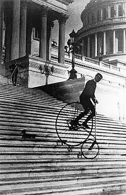 Daraus sei die Idee entstanden, einen Ball zu nehmen. Am 14. September 1883 demonstrierte Kaufmann dieses Spiel erstmals mit einem anderen Kunstradfahrer.[15] Arthur Augustus Zimmerman bestritt in seiner Anfangszeit als Radrennfahrer Rennen mit dem Star-Bicycle.[1]