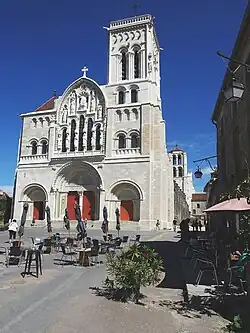 Die Basilika Sainte-Marie-Madeleine ist eine romanische Kirche mit frühgotischem Umgangschor und die ehemalige Abteikirche des einstigen Benediktinerklosters in Vézelay im Département Yonne in Burgund. Der Standort der Kirche geht auf eine erste karolingische Klosterkirche zurück, die auf dem 250 Meter hoch gelegenen Hügel der kleinen Gemeinde Vézelay (mit 448 überwiegend katholischen Einwohnern, Stand 1. Januar 2021) in der heutigen Region Bourgogne-Franche-Comté errichtet worden war. Die Kirche Sainte-Marie-Madeleine trägt seit 1925 den Titel einer Basilica minor.[2] Der Hügel und die Kirche von Vézelay zählen seit 1979 zum kulturellen UNESCO-Welterbe. Seit 1998 ist die Kirche auch als Teil des UNESCO-Welterbes „Jakobsweg in Frankreich“ ausgezeichnet.
